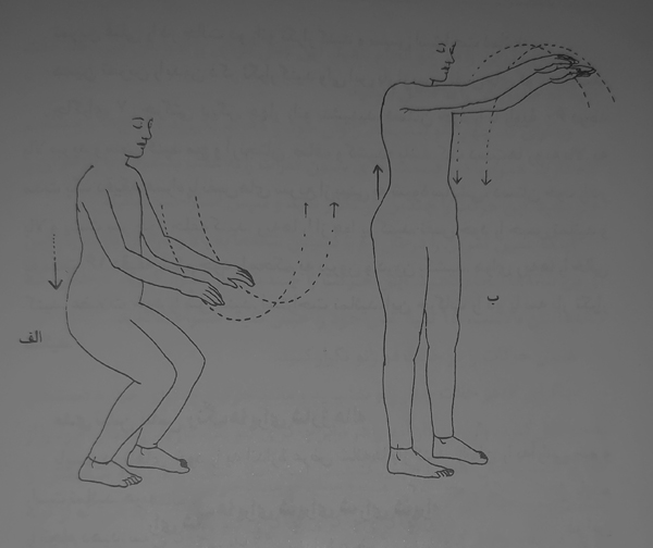 حرکت بالا و پایین قبلی را با حرکت دایره وار دستان همراه کنید.
